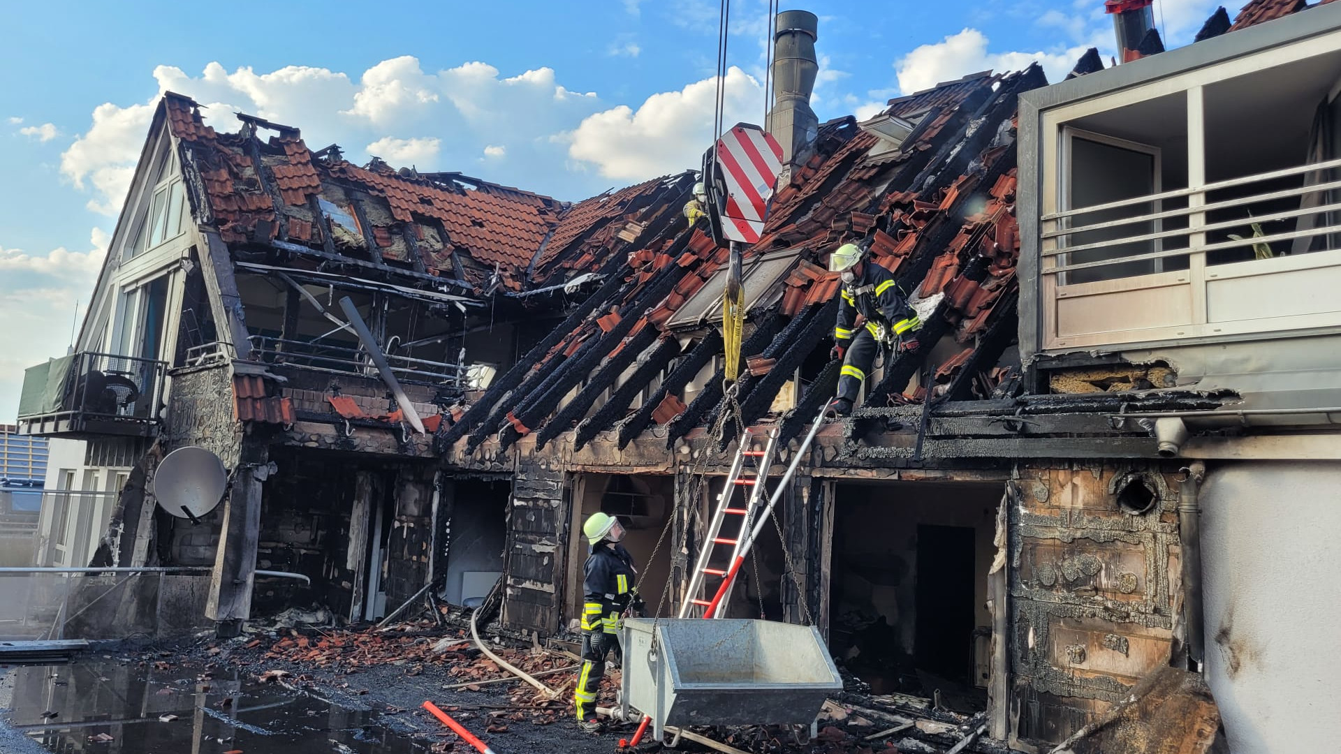 Aus dem Gebäude auf der gegenüberliegenden Seite unserer Wache schlugen bereits Flammen aus dem ersten Obergeschoss. Eine schwerverletzte Person wurde von unseren ersteintreffenden Kräften auf dem Gehsteig versorgt.