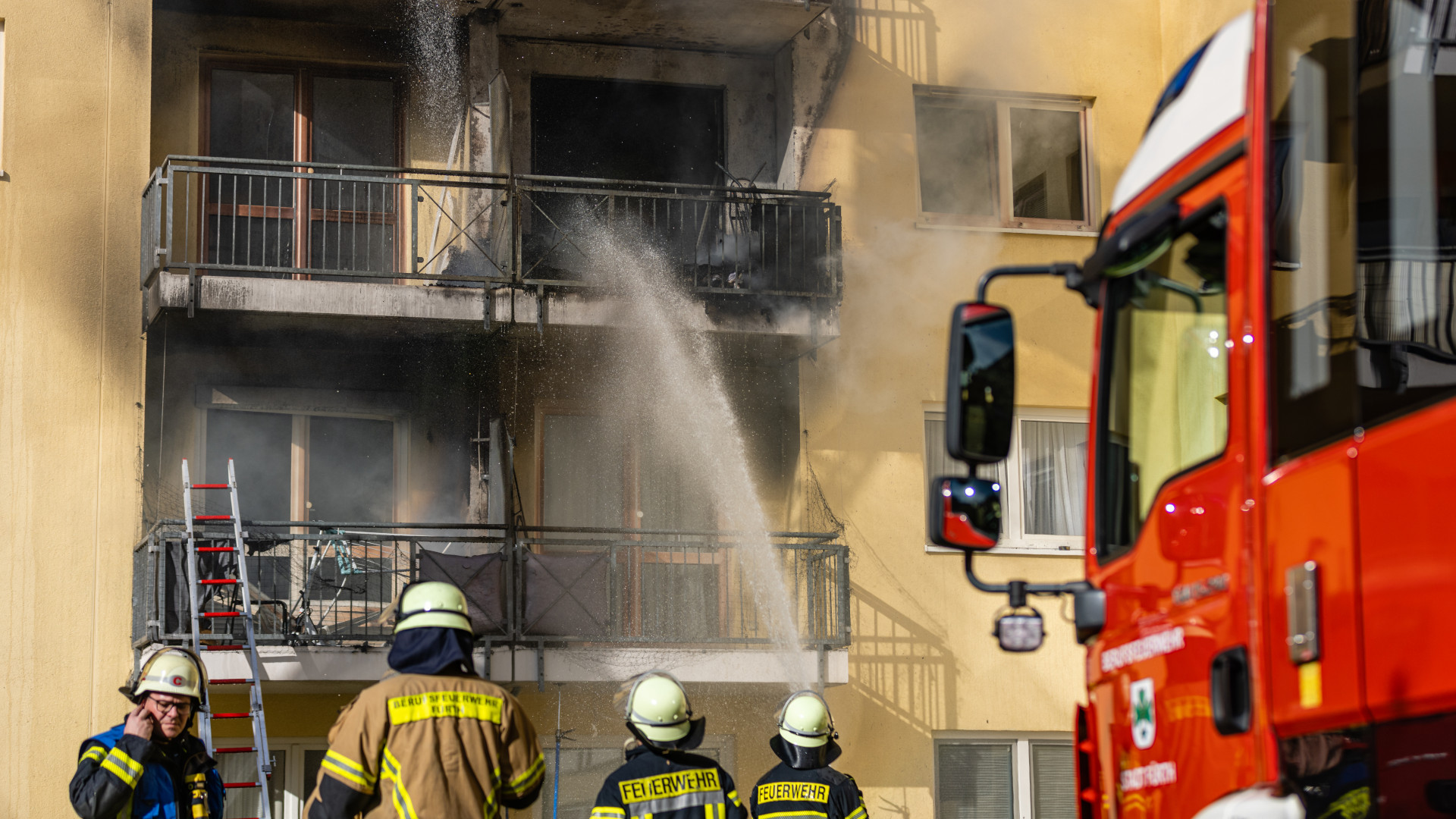 Bereits beim Eintreffen standen mehrere Balkone über mehrere Stockwerke hinweg in Flammen. Zur effektiven Brandbekämpfung wurden zwei Einsatzabschnitte gebildet.