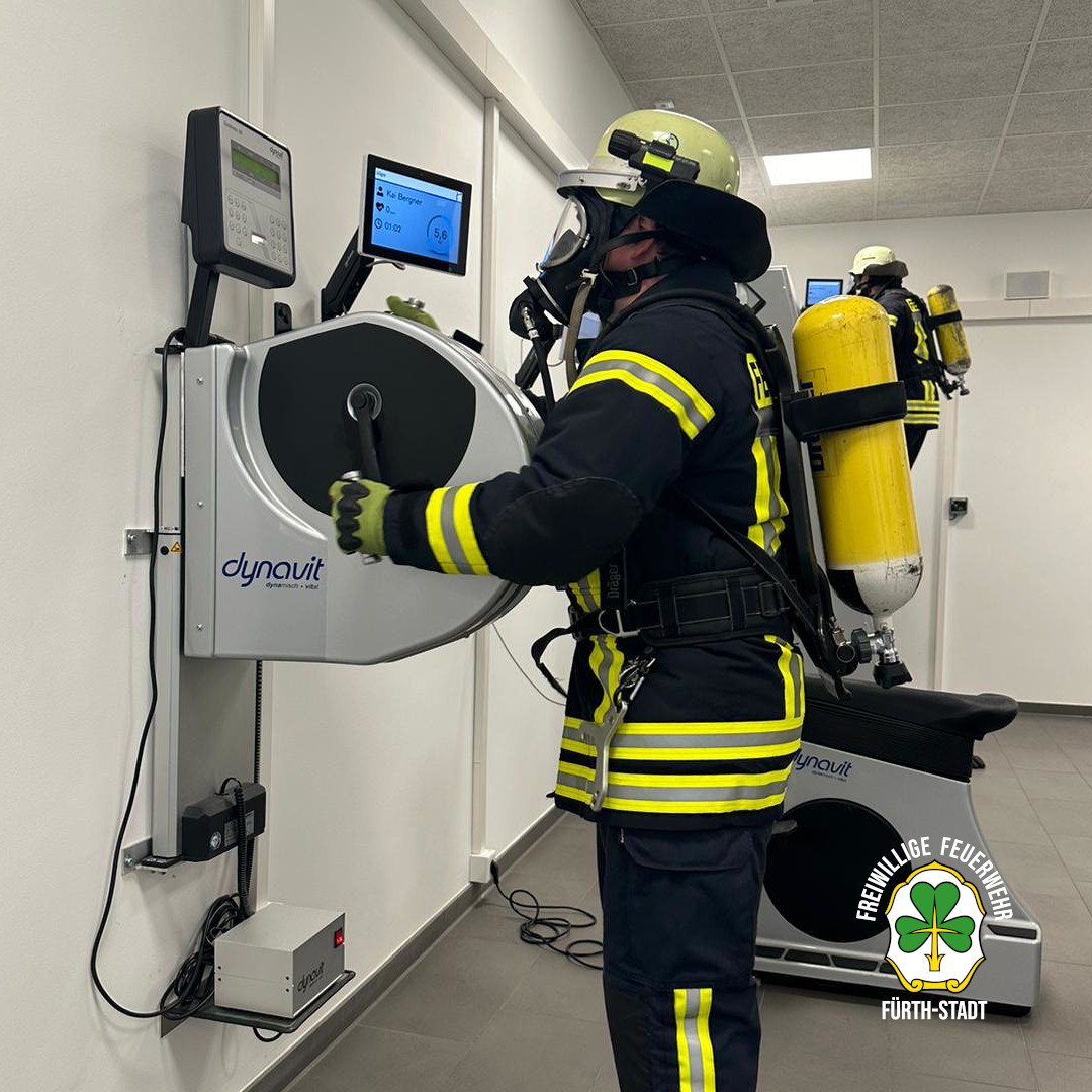 Von Handergometer über Laufband bis hin zur Endlosleiter, Schlaggerät und Fahrradergometer mussten unsere Atemschutzgeräteträger verschiedene Übungen absolvieren, um ihre Ausdauer und Leistungsfähigkeit zu beweisen.